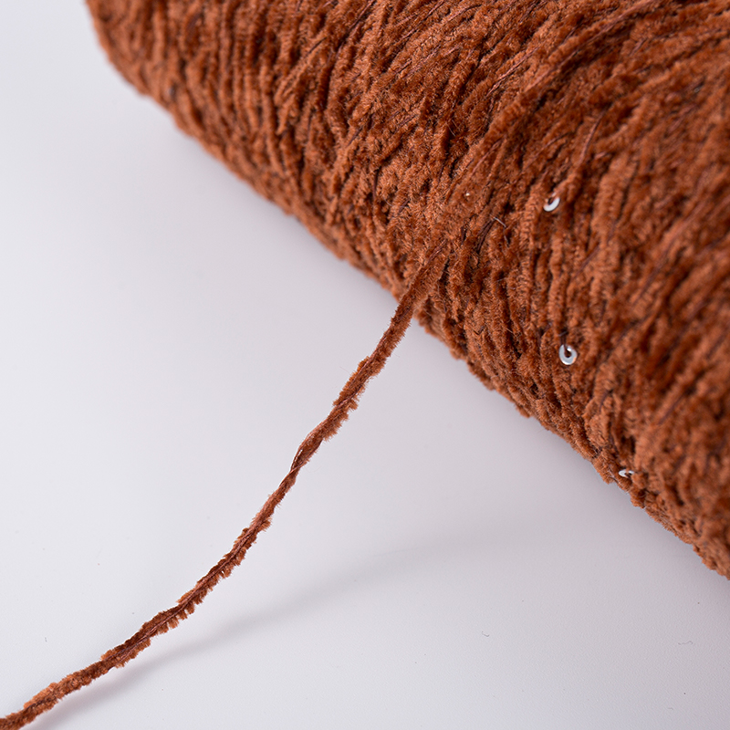 Heim / Produkte / Polyester -Paillongarn / Hellbraunes Chenille -Garn Polyester Paillette Garn